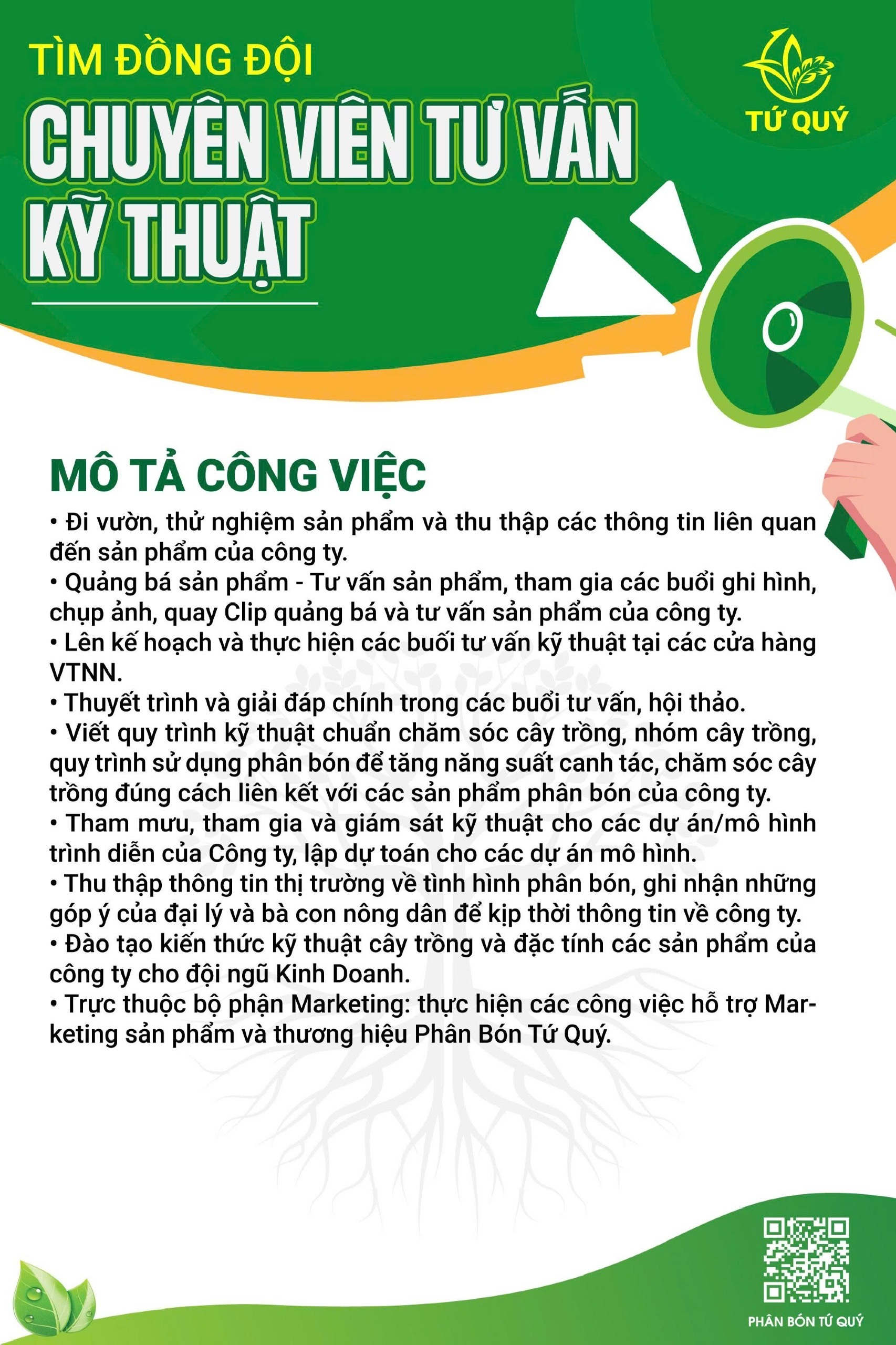 - Trực thuộc bộ phận Marketing: thực hiện các công việc hỗ trợ Marketing sản phẩm và thương hiệu Phân Bón Tứ Quý. anh nma hà thắng