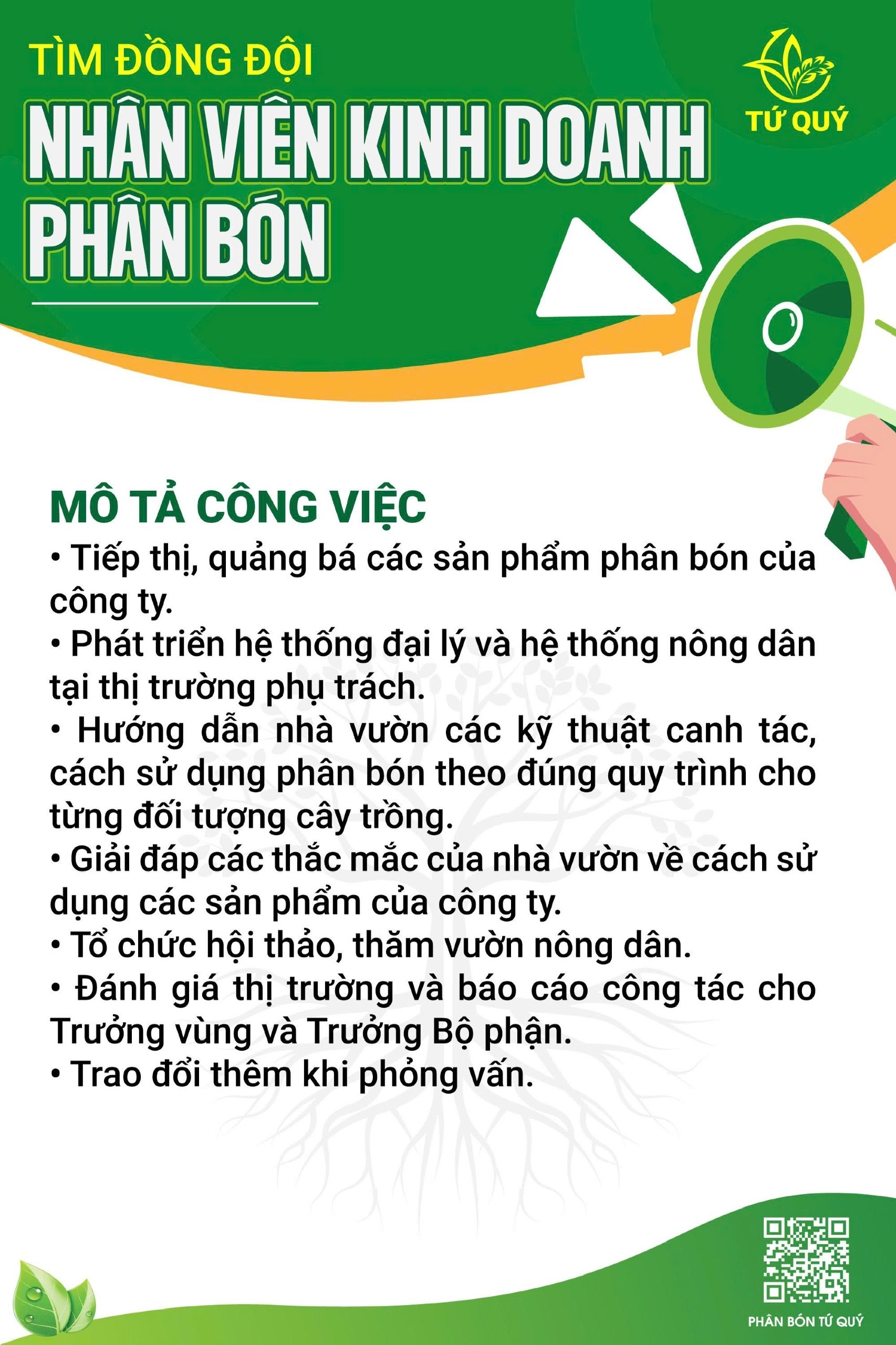 Ứng viên có thể trao đổi trực tiếp qua Fanpage Công Ty Tứ Quý: facebook.com/phanbonlatuquy